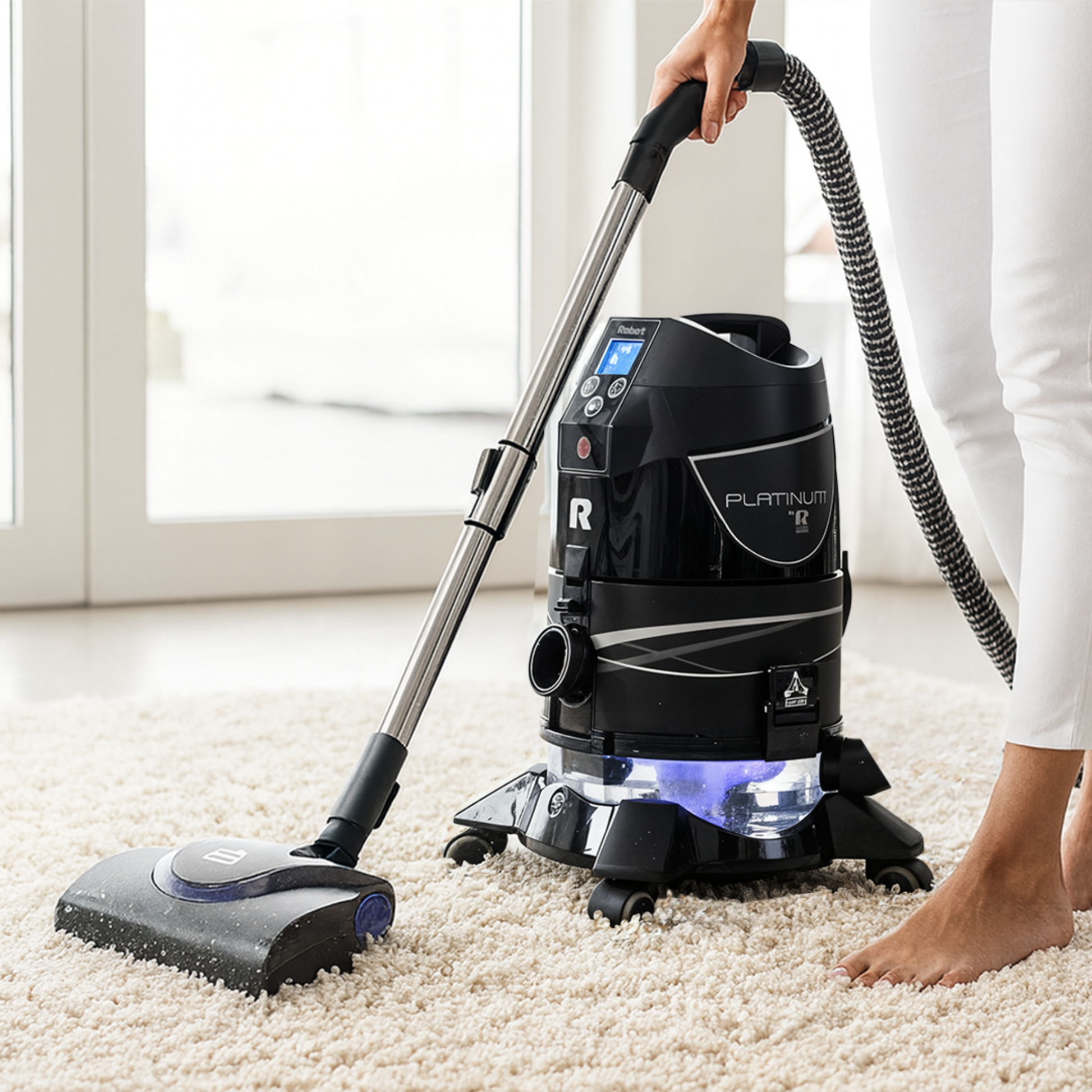 Usa el agua como filtro natural, atrapando polvo, suciedad y ácaros sin volverlos al ambiente. Ideal para hogares con niños, mascotas o personas con alergias y asma.